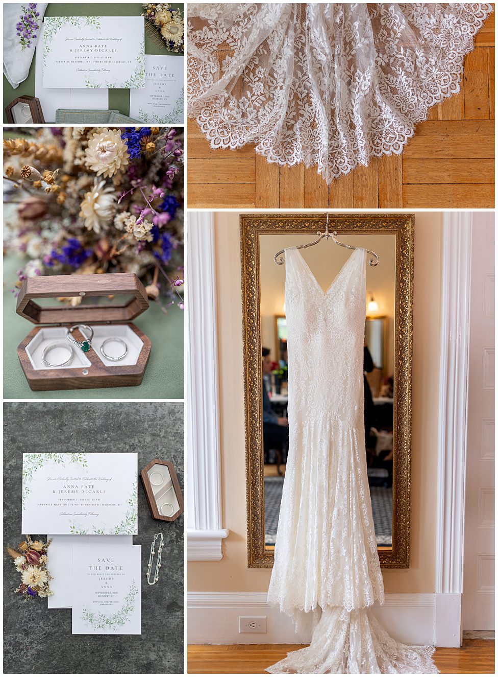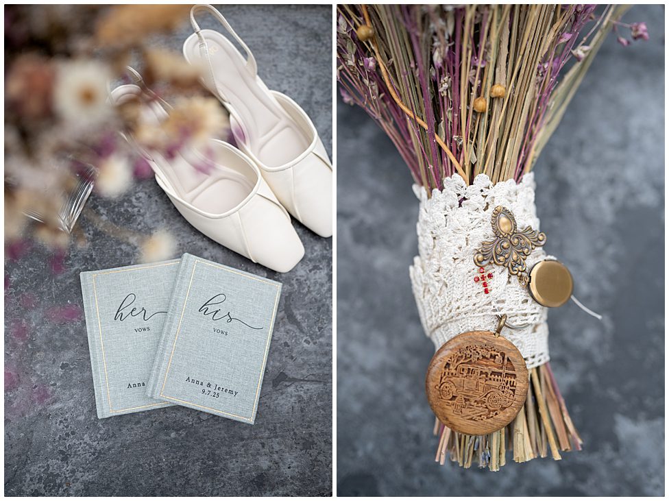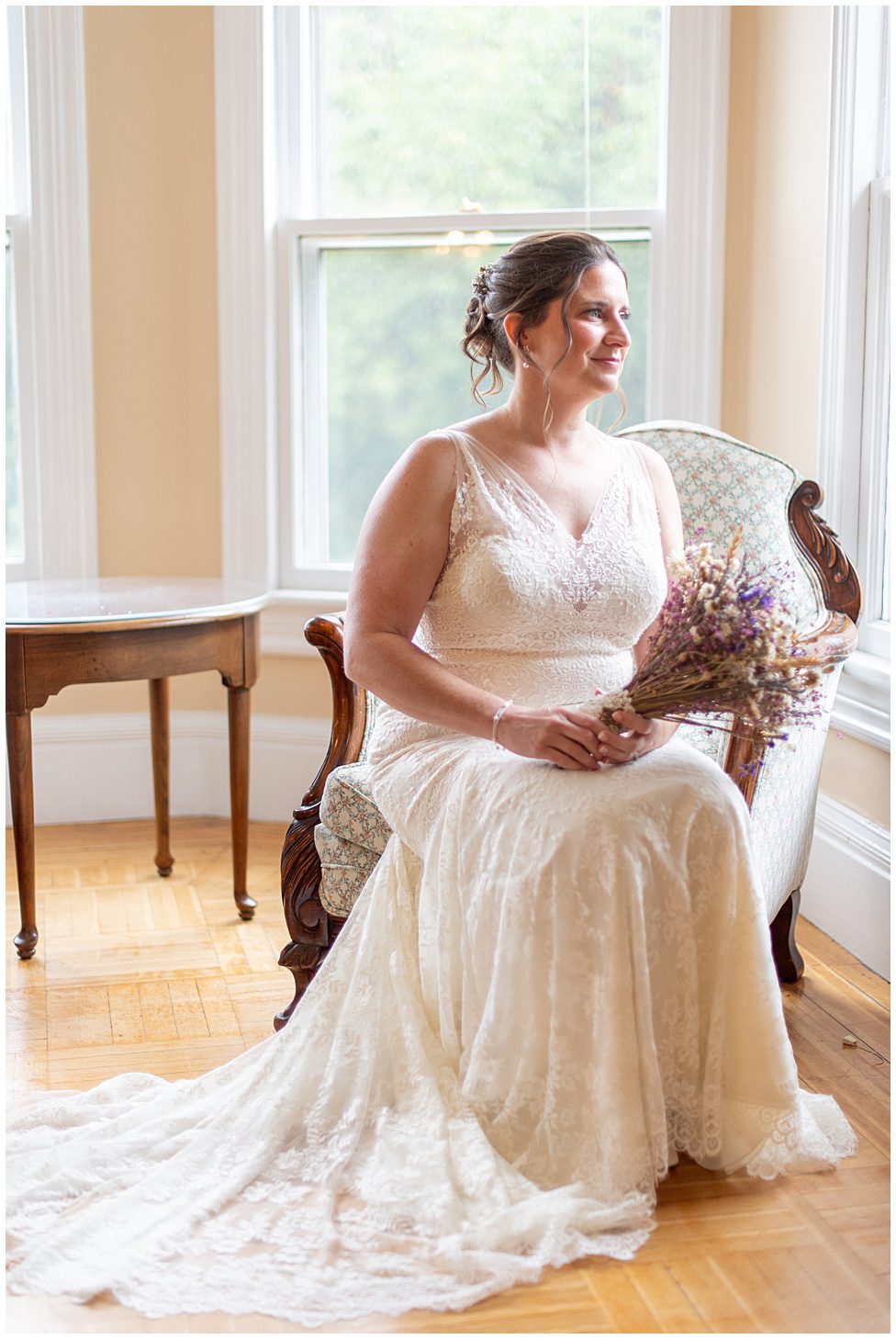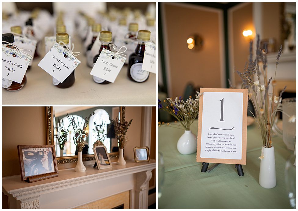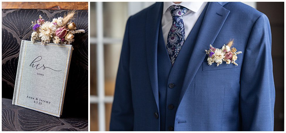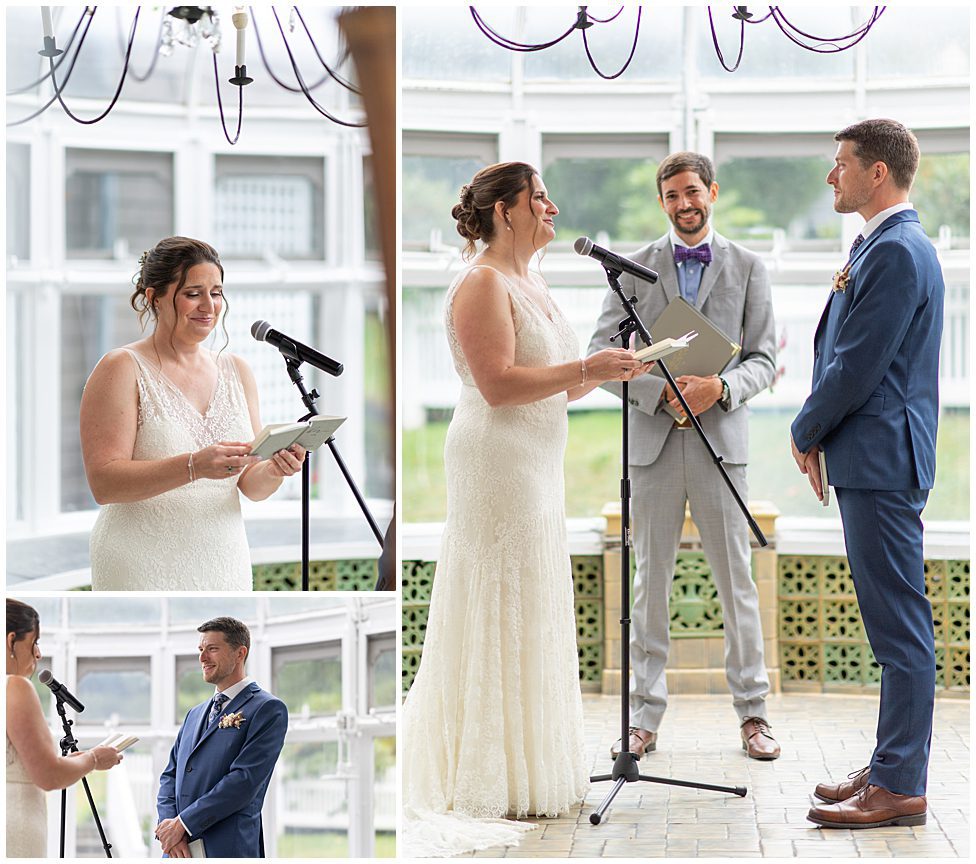 Jeremy and Anna had such a beautiful and unique wedding at a historic mansion. The ceremony and reception were held inside the atrium, which was such a stunning backdrop for their celebration. Instead of dancing, they planned something that fit them perfectly—lawn games! Their custom cornhole boards with their dogs’ faces on them were such a fun touch and had everyone smiling.
