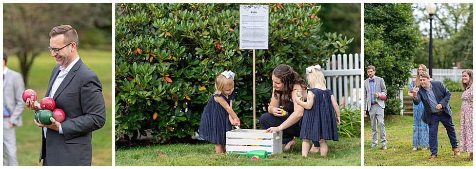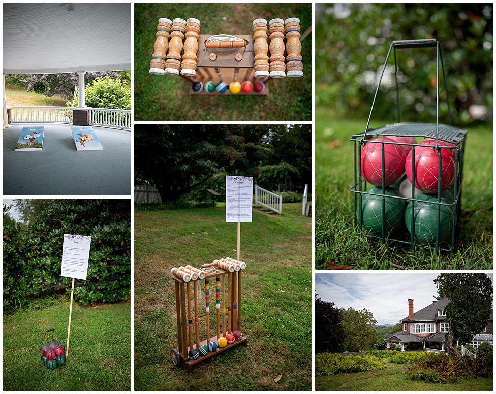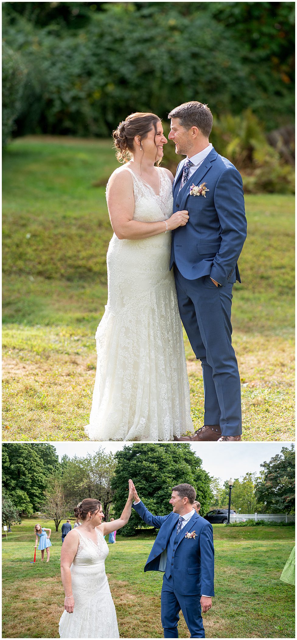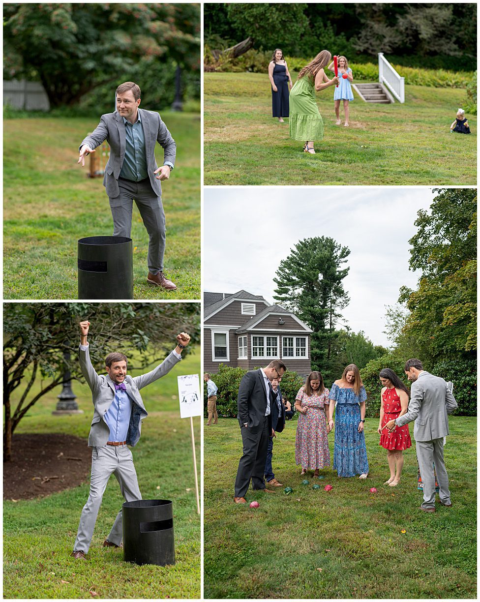 One of my favorite details of the day was their cake. Jeremy’s father made it himself—a homemade carrot cake that was every bit as meaningful as it was delicious. Even though the rain came down earlier in the day, we still made it outside for photos, and by the time the evening rolled around, the sun broke through. Guests were able to head out on the lawn, enjoy the games, and spend time together!