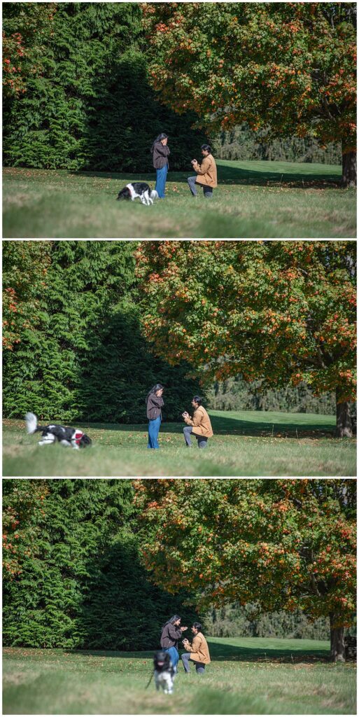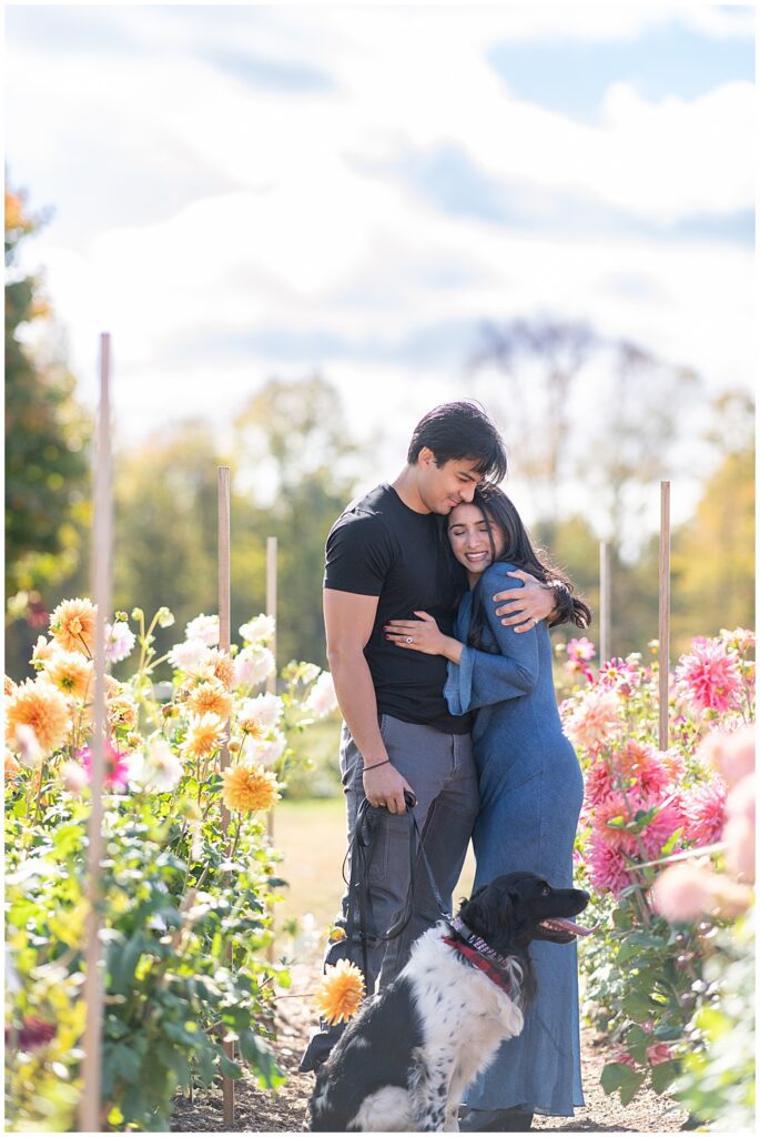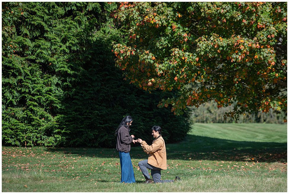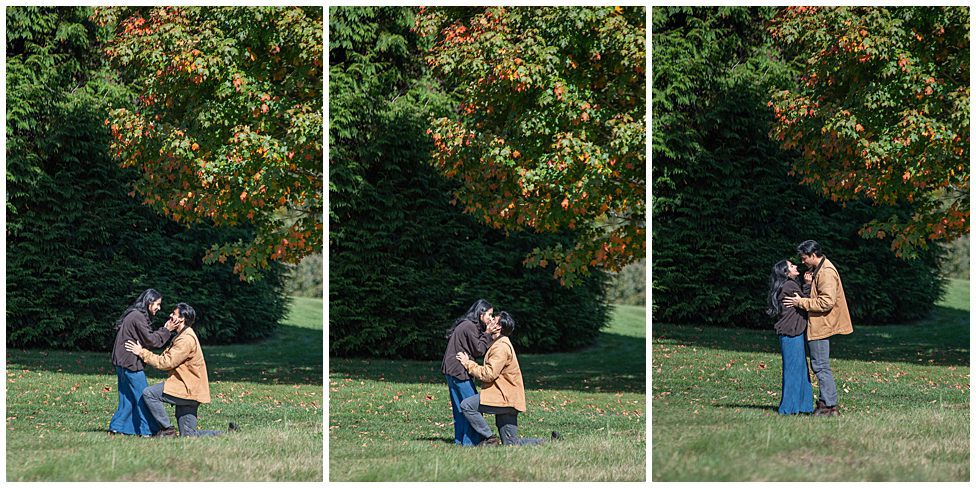 Sean planned the sweetest surprise for Iqra — one that felt perfectly them. He chose a quiet farm they’d been to before, with a spot surrounded by maple trees just starting to turn for fall and a section of the property devoted entirely to dahlias that were in full bloom. He even mentioned a tree he loved there that, in his words, gave off Lord of the Rings vibes.